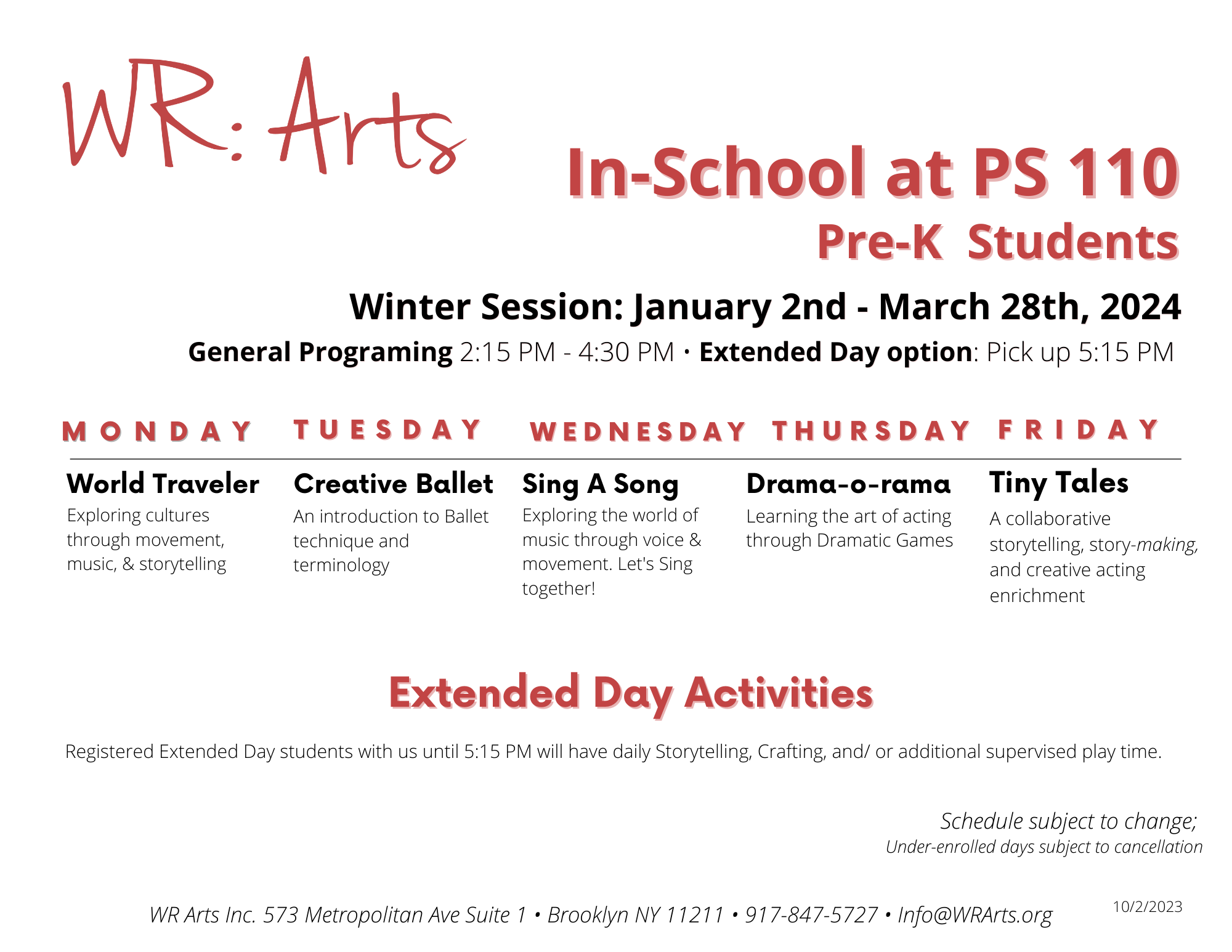 Source : www.ksbe.eduP.S. 110: WINTER 2025 — WR: ARTS!